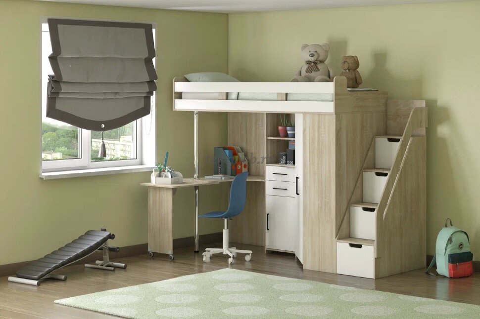 Кровать-чердак Карамель 77-01 (анкор светлый/зелёный)