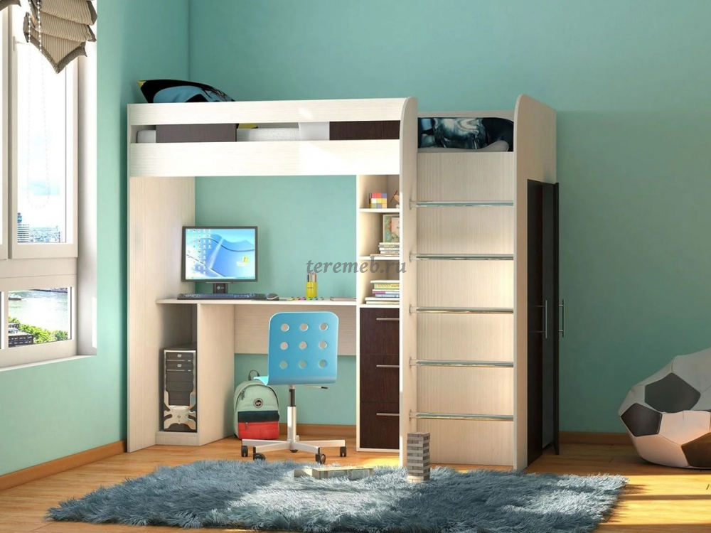 Кровать-чердак Лео (анкор светлый/бодега тёмный)