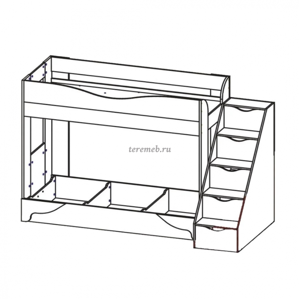 Конструкция данной модели универсальна: лестница с ящиками собирается как с правой, так и с левой стороны кровати.