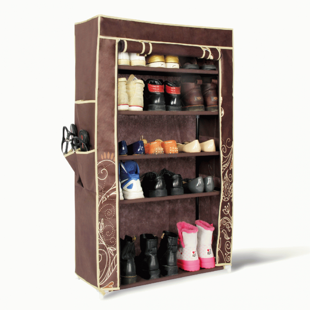 Фото товара Полка для обуви с чехлом SHT-SR1. Размеры: 700 х 300 х 1100 мм; Материалы: Металл; Ткань; Пластик;, Цвет: Тёмно-коричневый